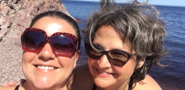 I was in my happy place. I am a water baby. Always have been, always will be. Stacy also loves the water and as we turned to leave Stacy and I snapped a picture of us to document the moment. We didn’t check to make sure it was a good picture. We just took it quickly and kept on our path back to the campsite up more flights of stairs. When we got back to camp, I posted it to our BWCAdentureSisters Facebook page to let our readers know we were out adventuring together. It had been months since Stacy and I got together, and adventuring is one of our favorite things to do. We were both energized and very ‘here and now’ the moment the picture was taken. I believe it captured the peak of our happiness during that excursion.
